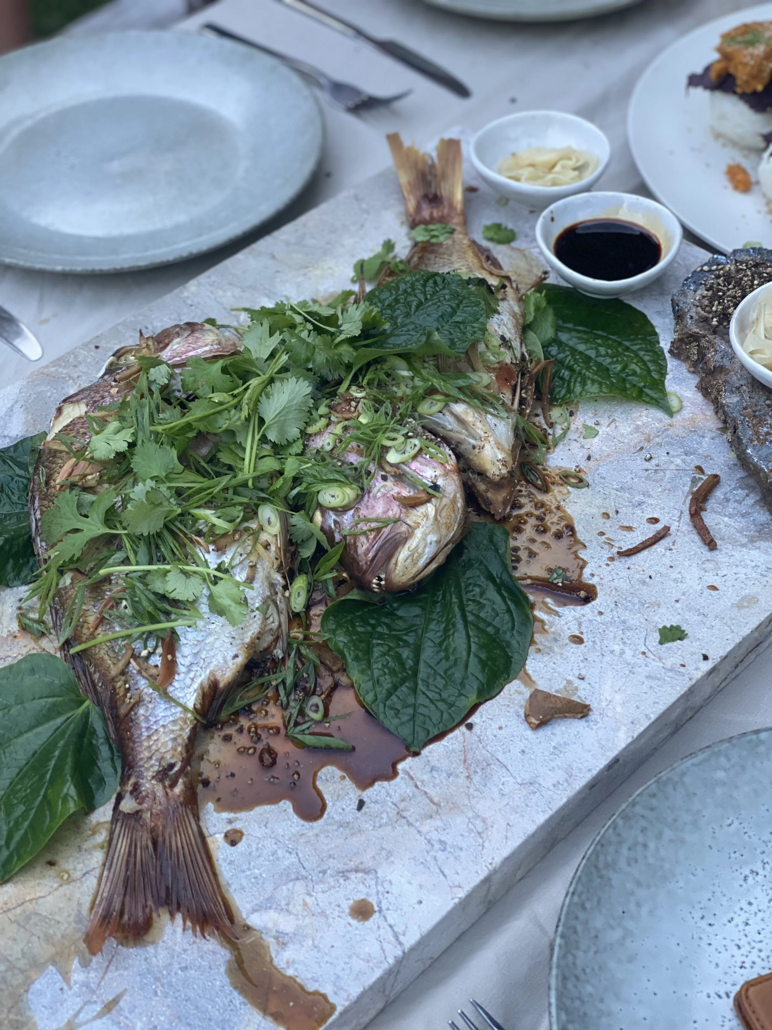 WHOLE ROASTED SNAPPER WITH BETEL LEAF, AROMATICS AND HERBS